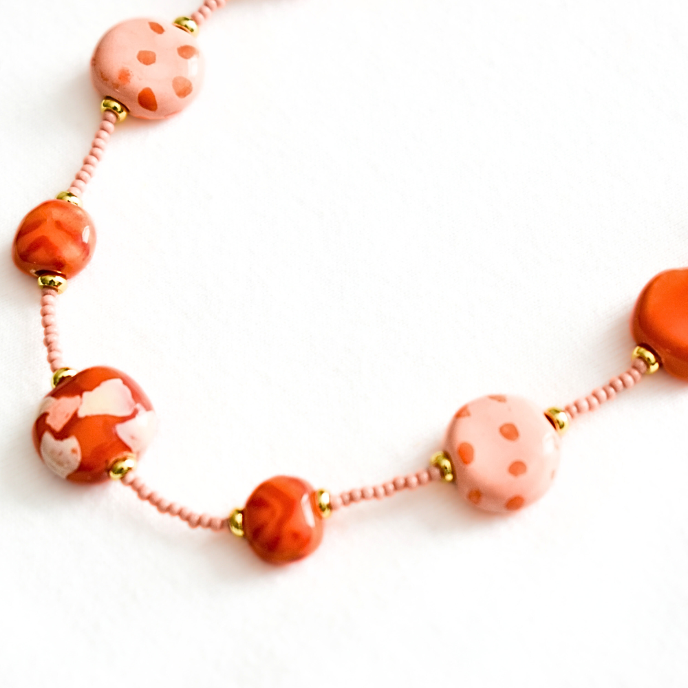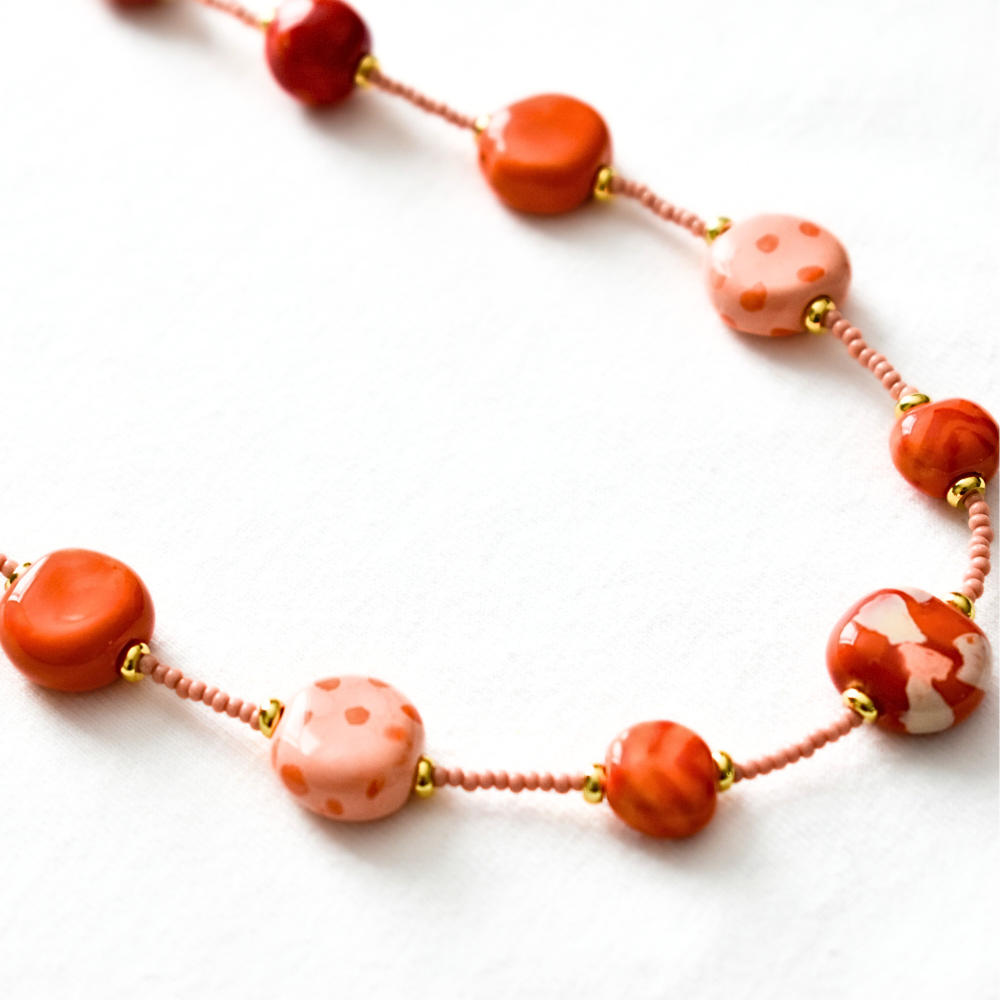 Introducing our Delicate Collection, a refined selection of handcrafted necklaces designed for those who appreciate understated elegance. Each piece features hand-rolled ceramic beads, carefully strung to create a light, airy feel—perfect for layering or wearing solo. With a blend of soft hues, intricate patterns, and a graceful silhouette, these necklaces offer a touch of sophistication for any occasion. Whether you’re dressing up or keeping it casual, the Delicate Collection brings effortless beauty to your everyday style.