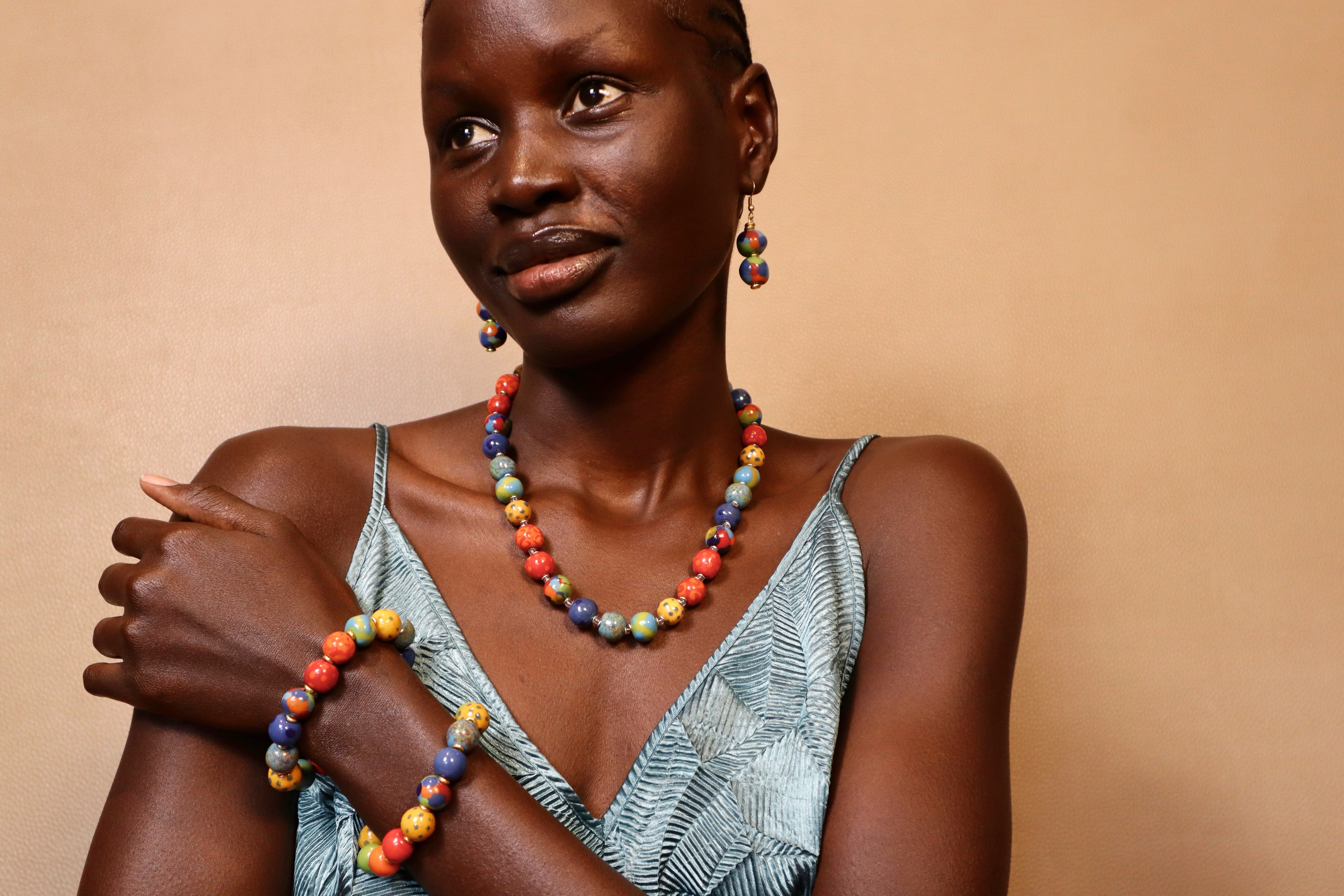 To maintain the beauty of your Kazuri jewelry, avoid exposure to harsh chemicals and store it in a dry place away from direct sunlight. Clean gently with a soft cloth.